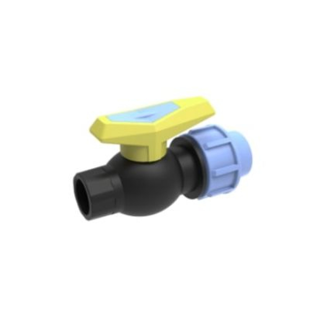Кран виготовлений із високоякісного поліпропілену (РР), який відрізняється хімічною стійкістю та довговічністю. Затискний механізм забезпечує повну герметичність з'єднання без використання зварювального обладнання, а повнопрохідна внутрішня куля гарантує відсутність втрат тиску в системі.