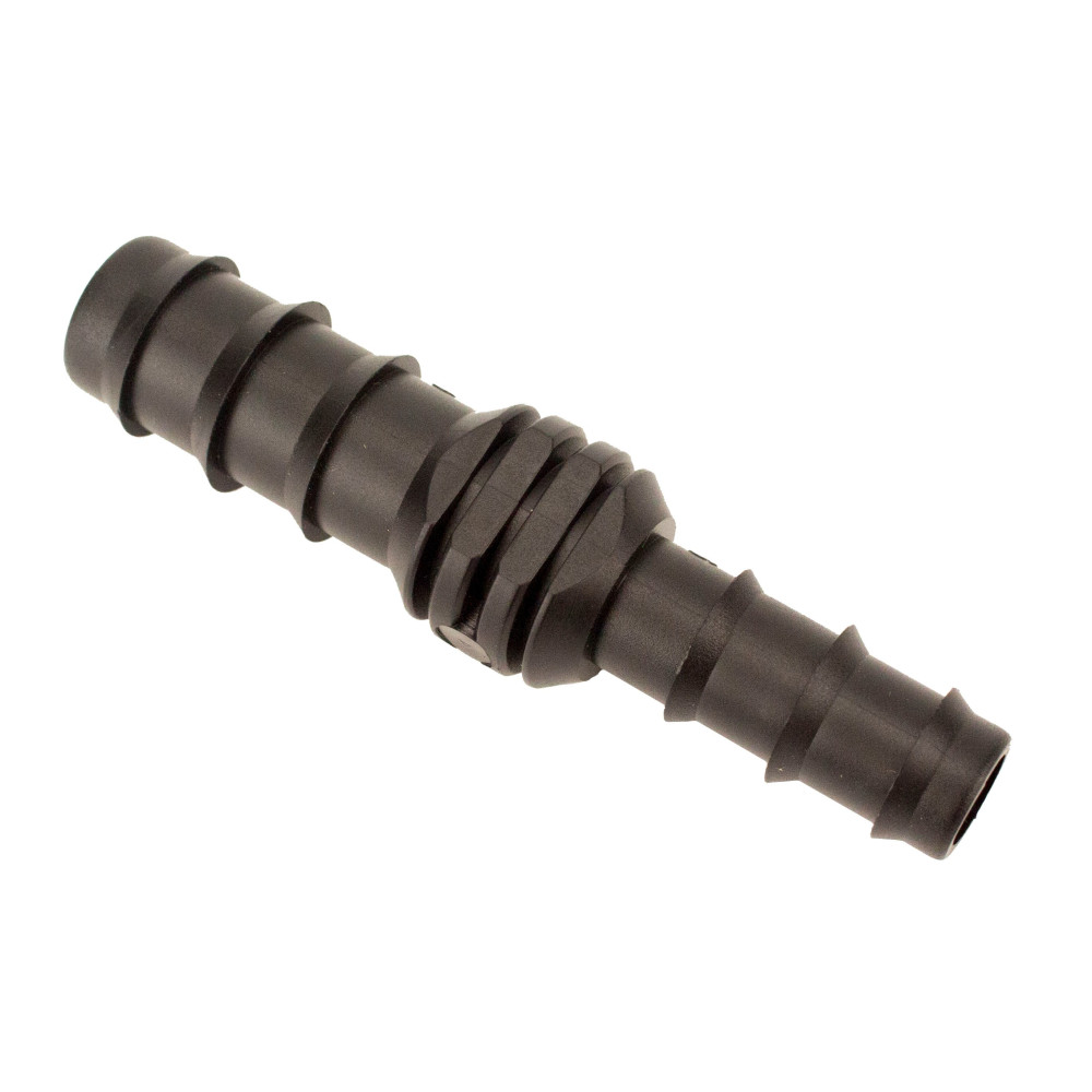 Фітинг оснащений якісними зубцями («йоржами»), які забезпечують міцну фіксацію трубки та запобігають її зриву навіть при підвищенні тиску в системі. Виготовлений з первинного поліетилену, що робить його стійким до впливу сонячних променів та агрохімії.